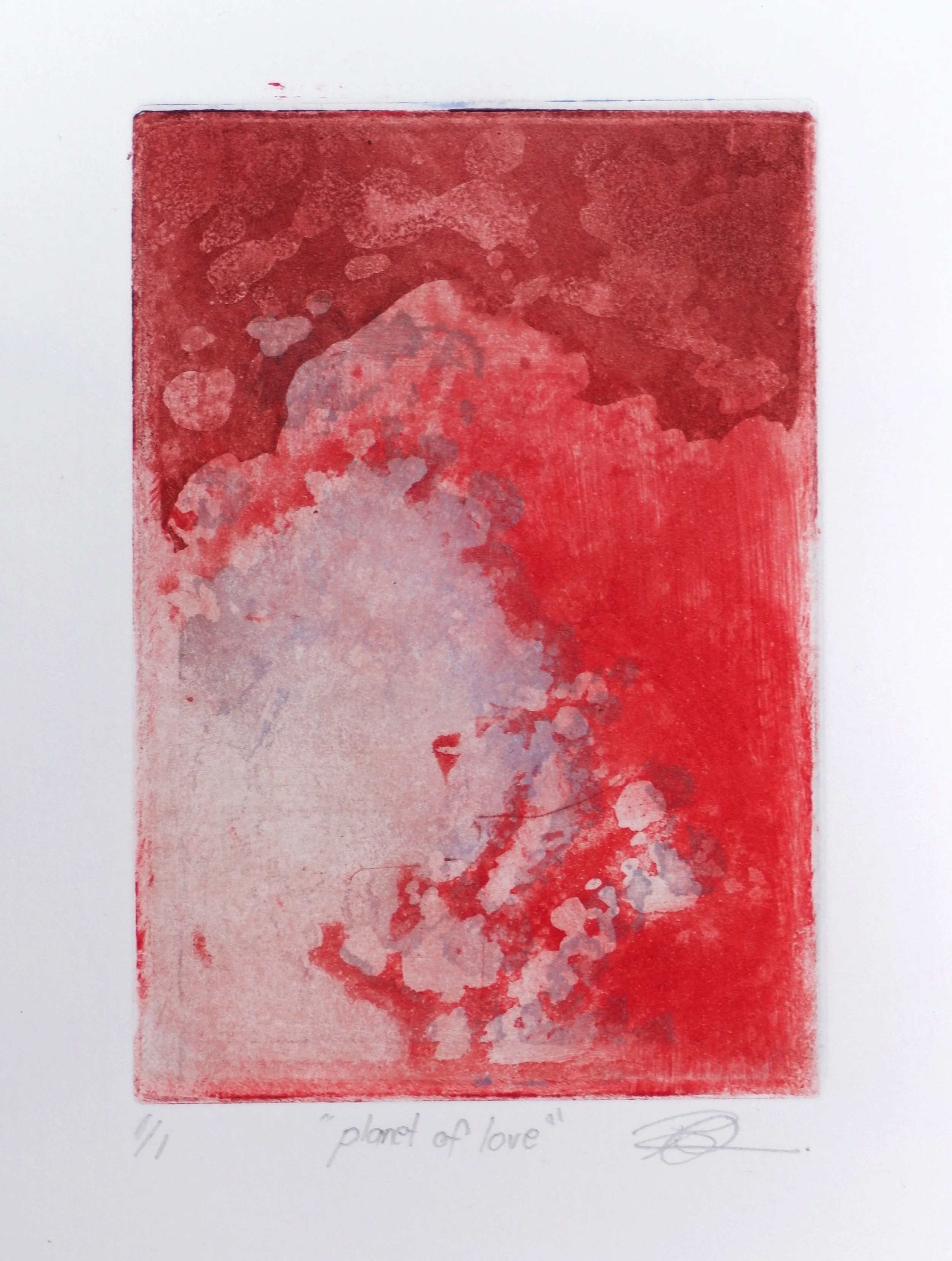 A continuation of a planetary series, in conjunction with the Mars print. Venus, the celestial body represented here, is known as the planet associated with love. It’s the antitheses and romantic partner of Mars in Greek and Roman mythology (Venus and Mars were lovers, presenting two sides of the same coin, love and war). When looked at from afar the terrain of Venus is smooth and wavelike, but when closely inspected, more variation in texture can be recognized. It is known to be the most brutal planet in terms of environment, with a surface hot enough to melt lead. This duality of a beautiful appearance but harsh condition can be in itself a euphemism for romantic love, making the duality between Venus and Mars that much more intriguing.